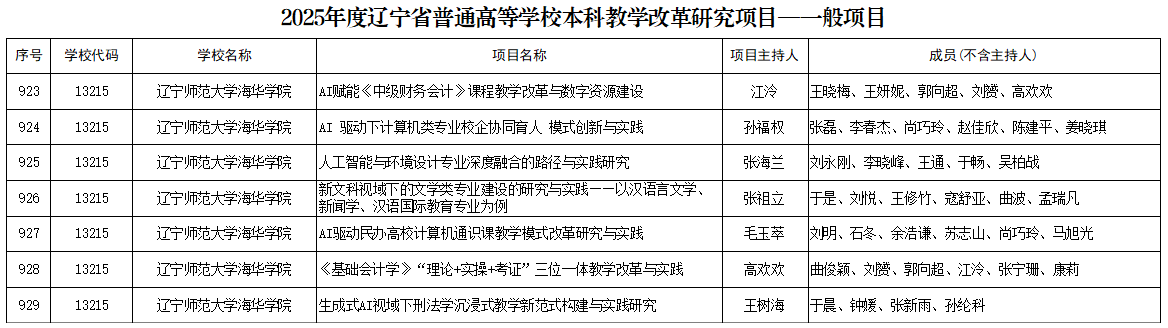 近日,辽宁省教育厅发布了《关于确定2025年度辽宁省普通高等教育本科教学改革研究项目立项的通知》(辽教通〔2026〕139号),我校共有7项课题成功获批省级立项。